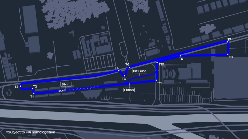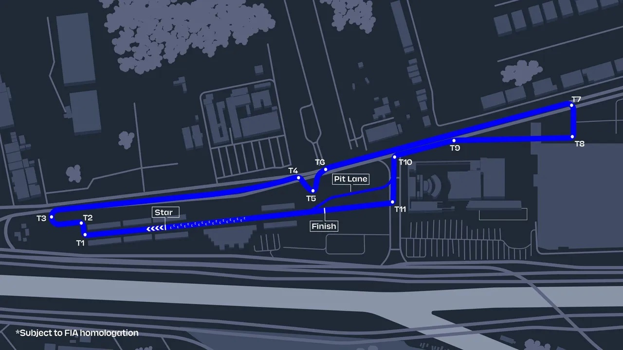 これまでのフォーミュラEコースで見慣れたコーナー形状が多いが、コーナー数は11とかなり少ない部類に入る。