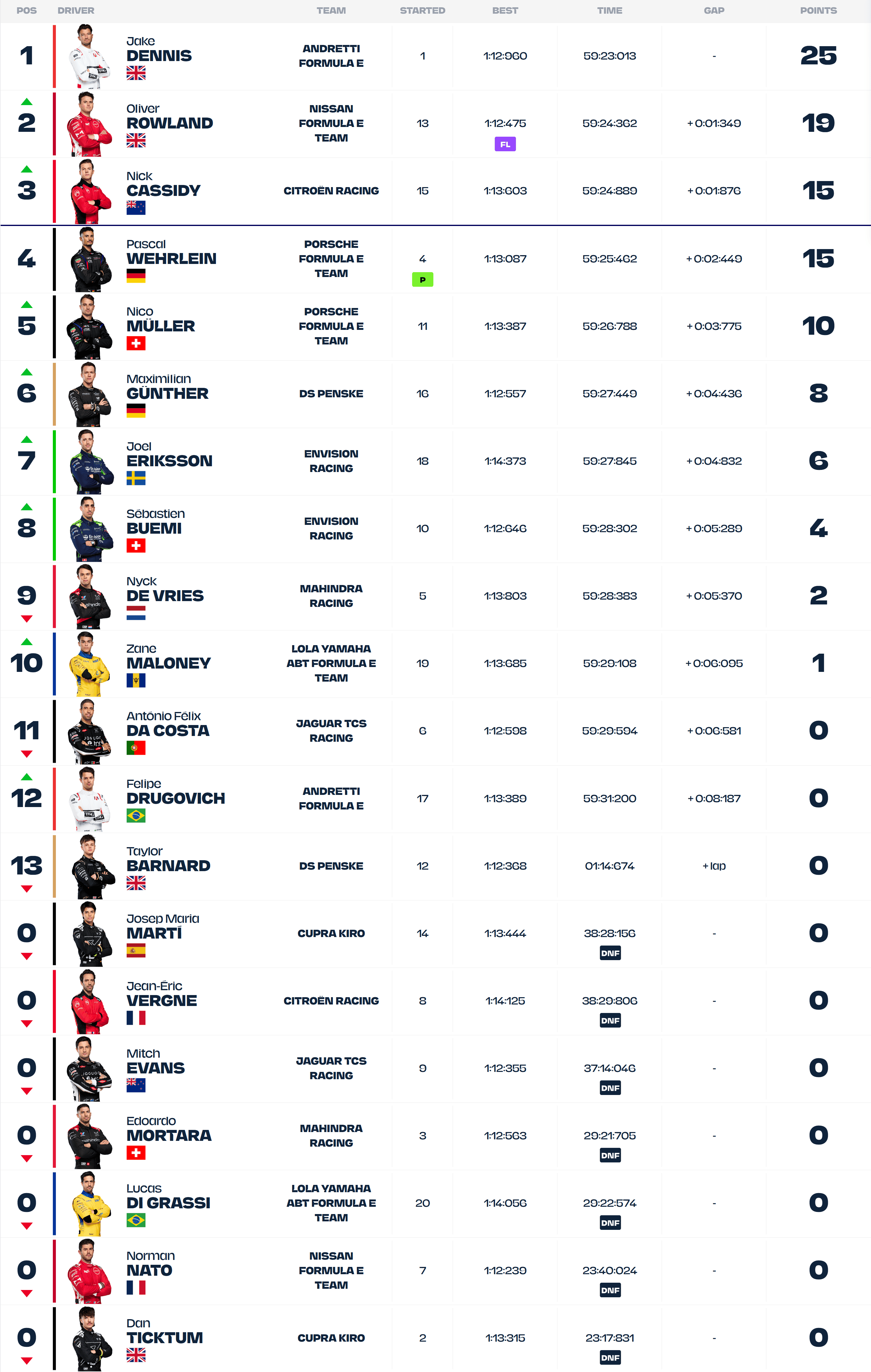 フォーミュラEは1戦を終えて、まずはデニスがリードした。