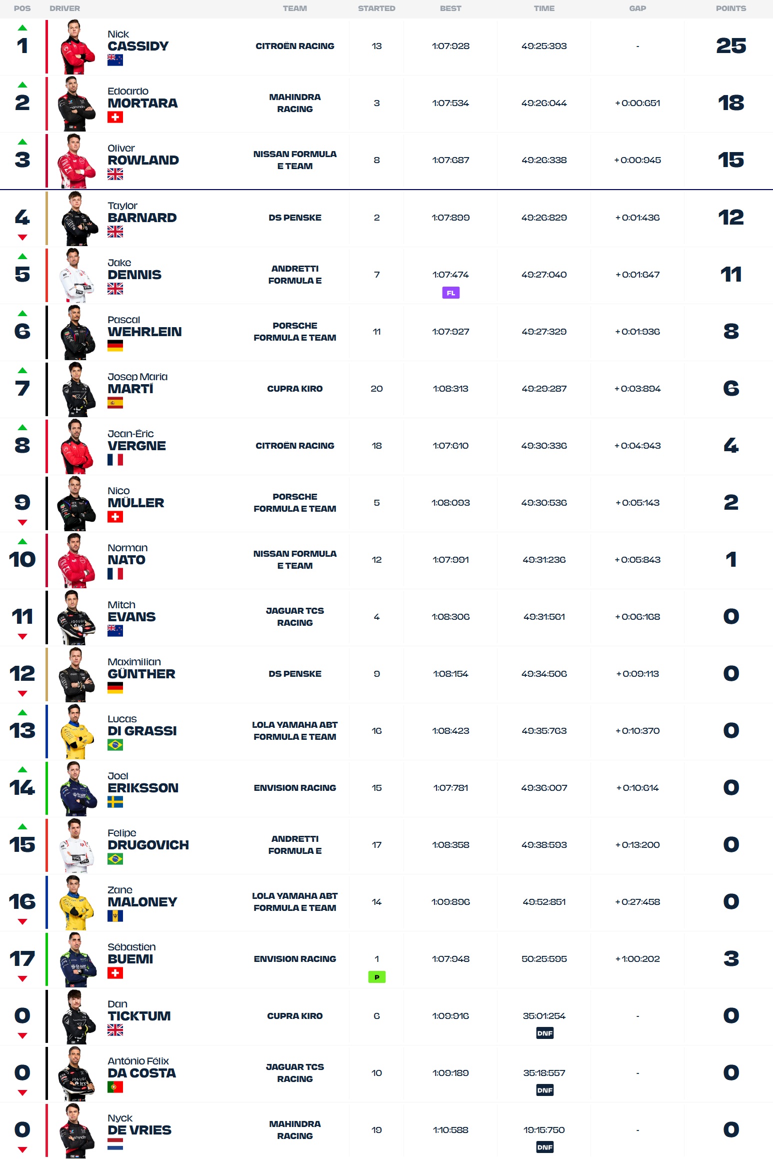 ランキング1位はシトロエンのキャシディ(40ポイント)